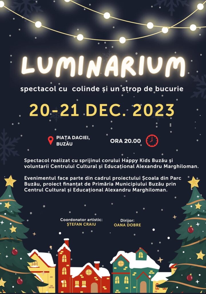 ,,Cu gândul că sărbătorile de iarnă sunt despre a fi împreună, vă invităm pe 20 și 21 Decembrie, cu mic- cu mare, să vă bucurați de colindele corului Happy Kids Buzău și un spectacol cu lampioane, în piața Dacia.