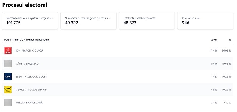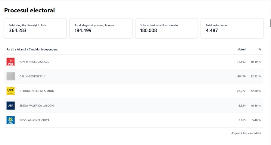 În municipiul Buzău, Marcel Ciolacu a obținut cele mai multe voturi, 36,05 la sută, în timp ce independentul Călin Georgescu a obținut un scor de 19,63 la sută. Pe locul 3 în preferințele cetățenilor din municipiu a fost Elena Lasconi, cu 16,26 la sută, iar pe 4 a fost George Simion, AUR, cu 10,22 la sută.