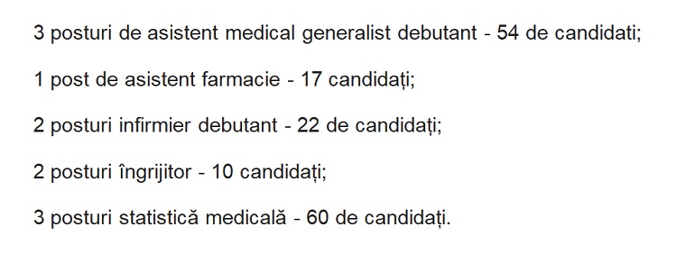 Reprezentanții spitalului țin să precizeze că, pentru buna desfășurare a tuturor etapelor concursului și pentru a exista transparență, comisia de concurs este constituită din personalul secțiilor unde au fost scoase la concurs cele 11 posturi.