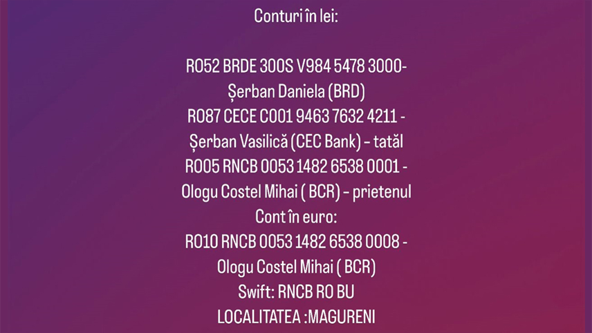Puteți dona orice sumă în conturile de mai jos. Împreună vom învinge!