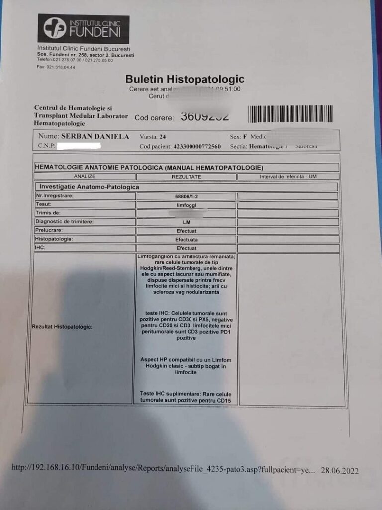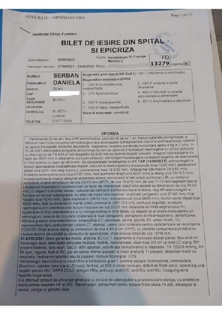 La doar 25 de ani, Daniela este diagnosticată cu un tip de cancer al sistemului limfatic. Ea a primit șansa de a fi tratată la o clinică din Turcia, unde va putea beneficia de un transplant de măduvă. Costurile, însă, sunt ridicate. 60.000 de euro este suma prin care Daniela își poate recâștiga șansa la o viață normală.