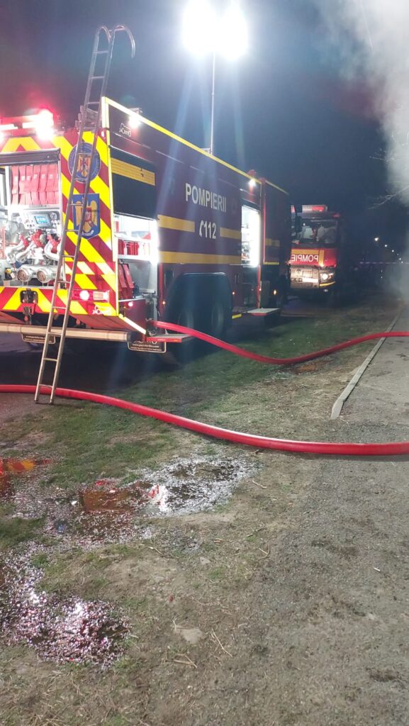 Alarma s-a dat în jurul orei 21:00. La fața locului s-au deplasat trei autospeciale de stingere cu apă și spumă, o autocisternă, o autospecială de descarcerare și o ambulanță SMURD.