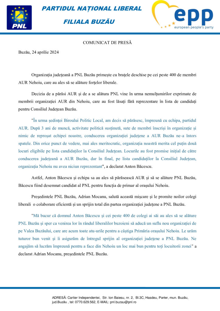Iată comunicatul de presă, transmis azi de PNL Buzău: