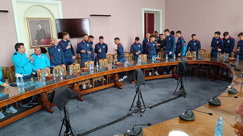 La finalul întâlnirii, s-a auzit clinchetul cupelor de șampanie iar toată lumea a ieșit în fața palatului, pentru poza de grup. Petrecerea va fi abia în weekend, atunci când clubul va organiza o recepție în cinstea echipelor de handbal și fotbal.