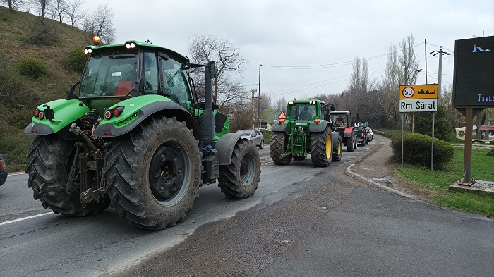 Tractoarele și camioanele fermierilor buzoieni au mărșăluit astăzi, în semn de protest, pe mai multe drumuri naționale din nordul județului Buzău, dar și pe Drumul European 85. Traficul rutier pe șoseaua care leagă Muntenia de Moldova a fost perturbat timp de aproape 30 de minute.
