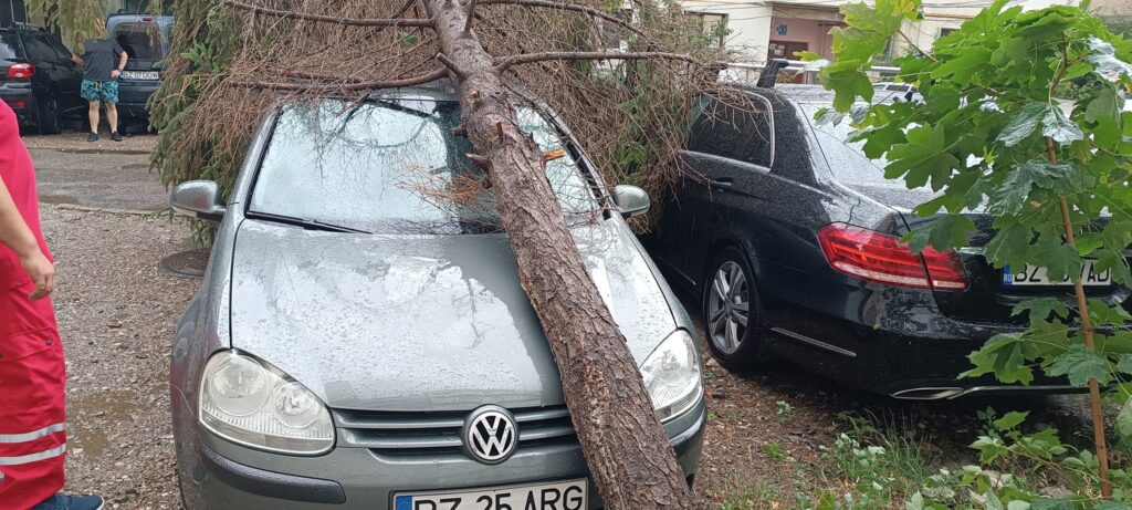 - Pe Strada General Grigore Baștan un arbore s-a prăbușit peste un autoturism (în urma incidentului, o femeie a fost rănită)