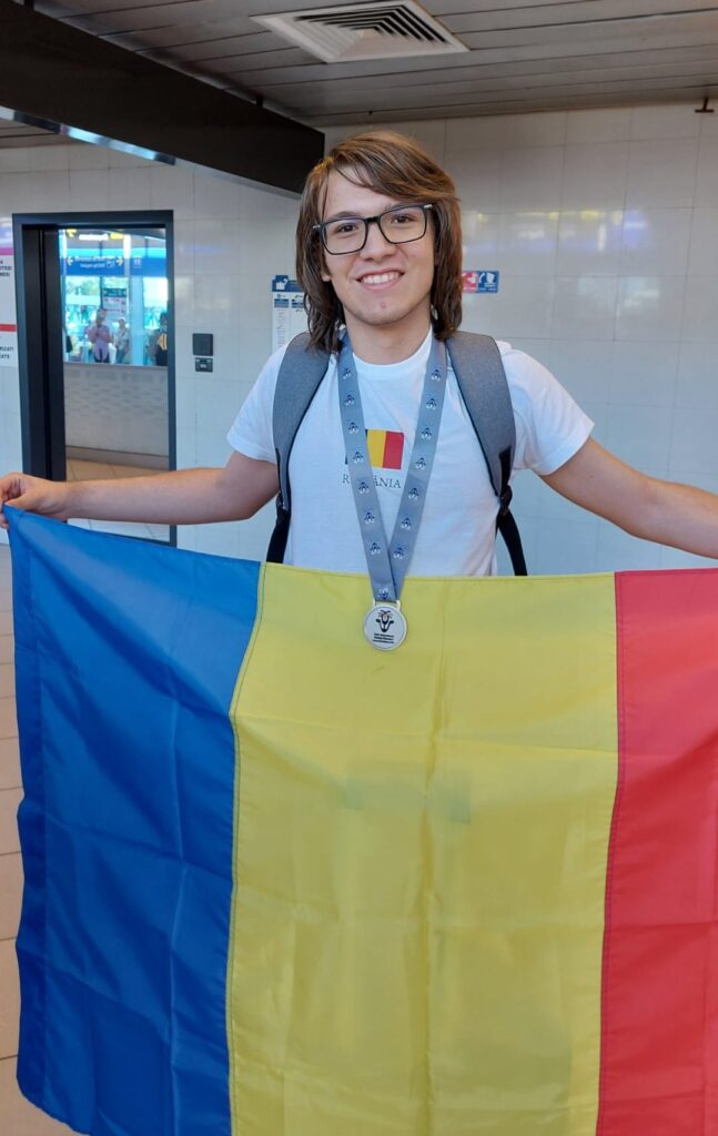 Tânărul, elev în clasa a XII-a la Colegiul Național ,,B. P. Hasdeu”, a fost întâmpinat de părinți la sosirea pe aeroport, unde a apărut cu medalia la gât, purtând și drapelul României.