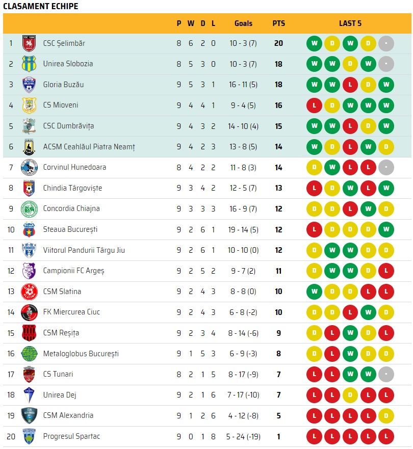 Gloria obţine cele 3 puncte în deplasarea de la Slatina şi se menţine pe locul 3 al clasamentului, în urma lui CSC Şelimbăr şi Slobozia, cele două având meci duminică, 8 octombrie.