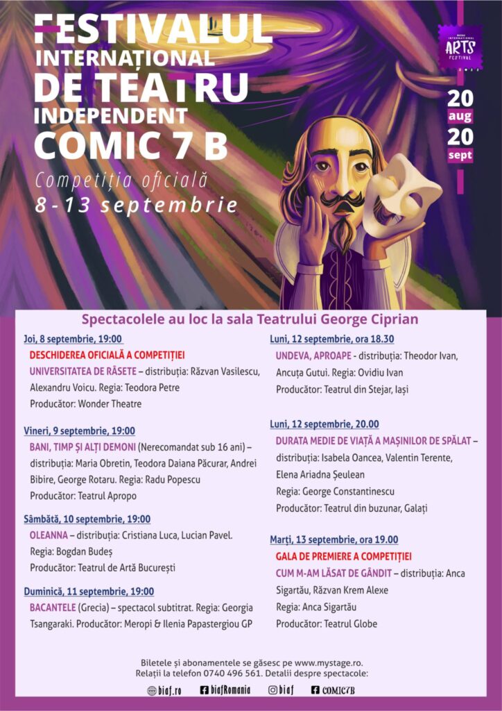 Spectacolele prezentate la ediția de anul acesta a COMIC 7 B sunt: