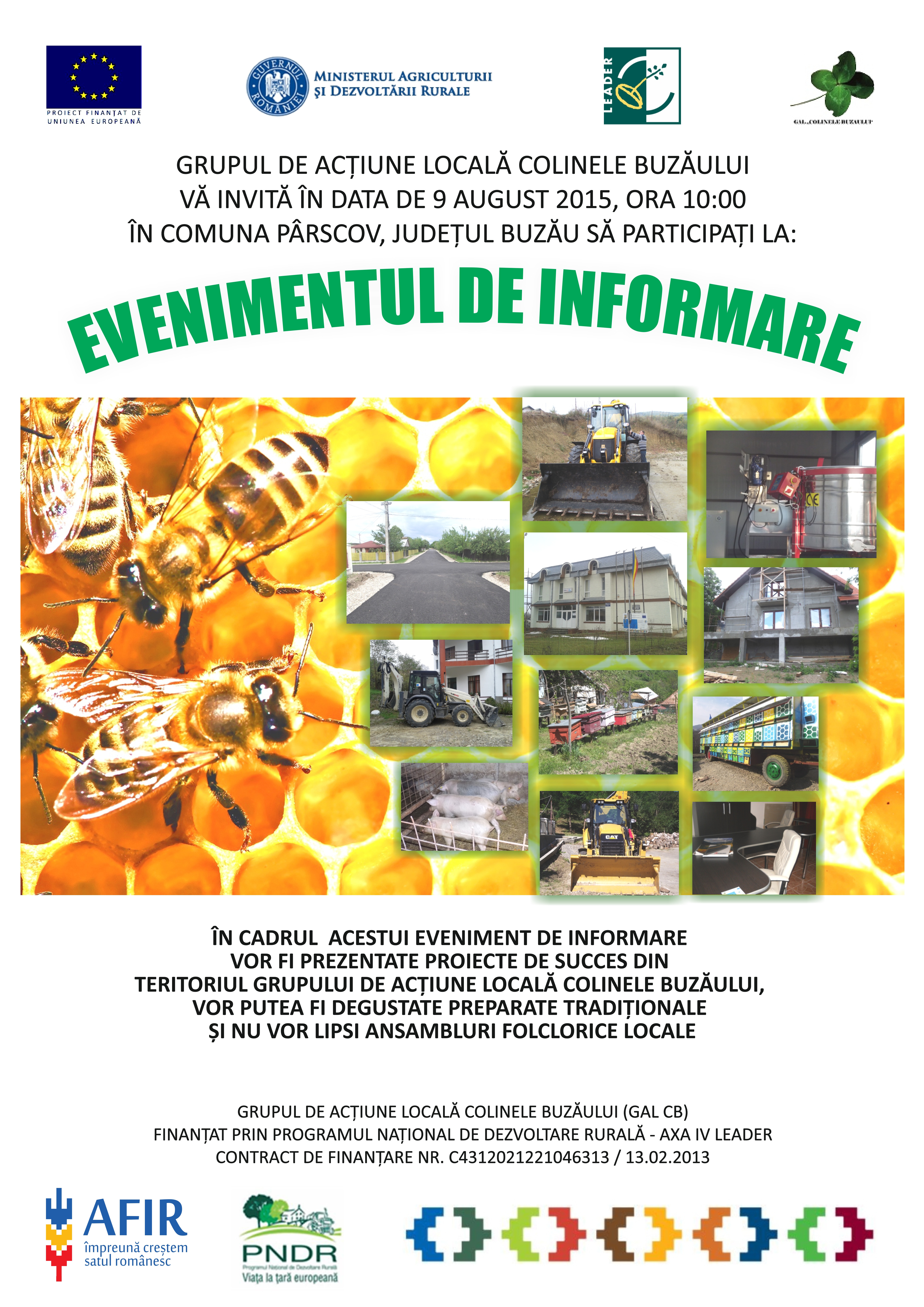 În cadrul “Evenimentului de Informare” vor fi prezentate informații privind rezultatele obținute de GAL Colinele Buzăului în urma implementării strategiei de dezvoltare locală și proiecte de succes realizate în teritoriul GAL.