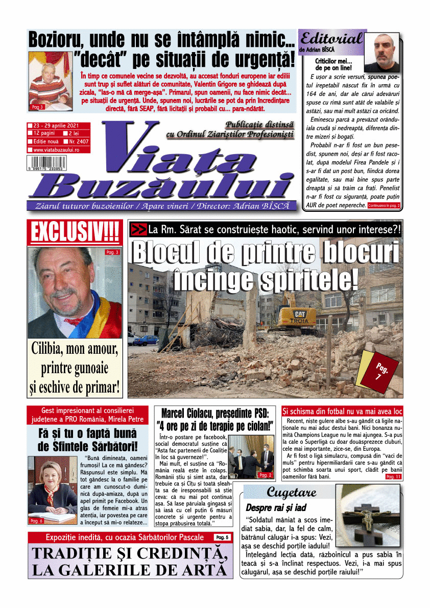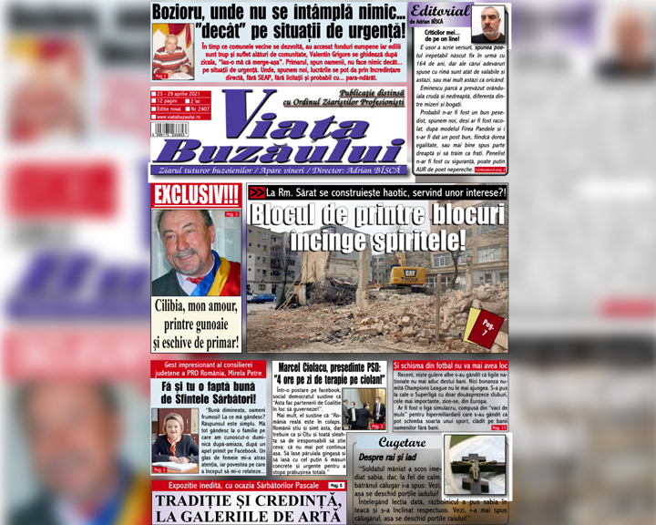 Astăzi, vineri, 23 aprilie, a apărut o nouă ediţie a săptămânalului Viaţa Buzăului.