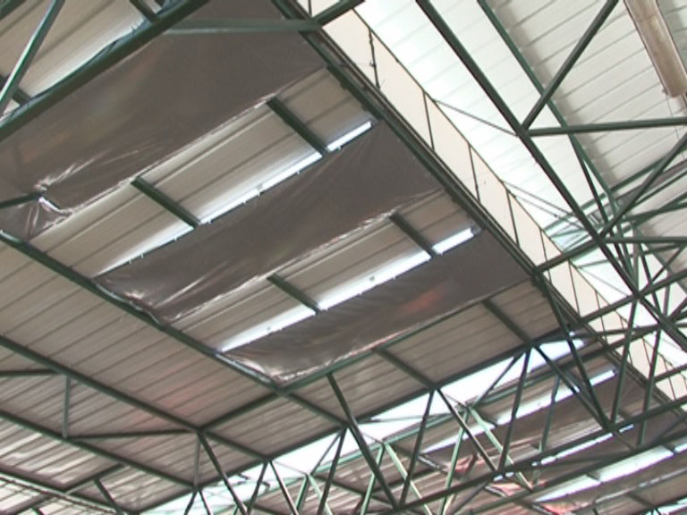 A început montarea unor perdele din pânză de poliplan care să acopere luminatoarele din acoperişul Pieţei Centrale.