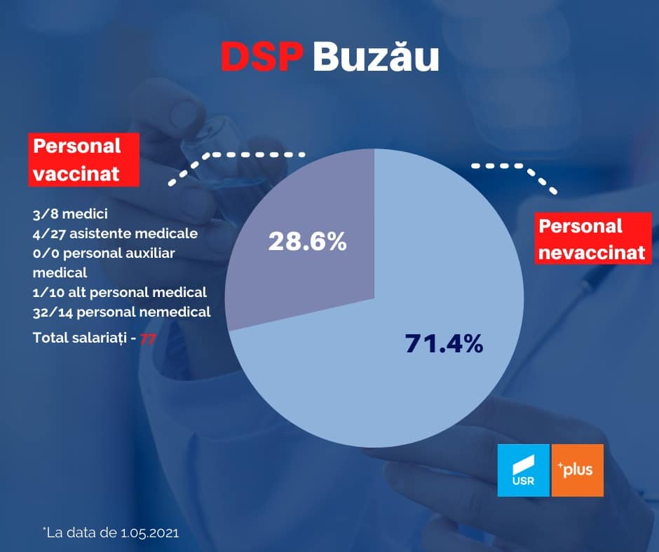 Din nefericire, doar 28% din personalul DSP era vaccinat în data de 1.05.2021 conform datelor puse la dispoziție chiar de către DSP Buzău.