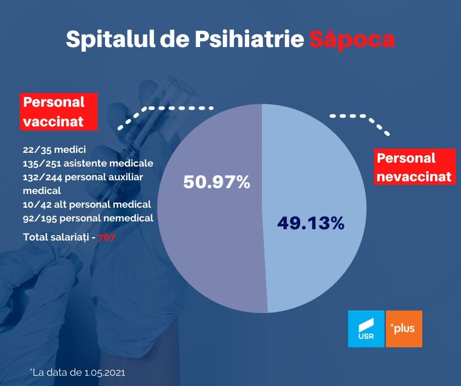 “La data de 1.05.2021 doar 43% din personalul medico-sanitar din județ era vaccinat împotriva Covid-19 cu două doze de vaccin.