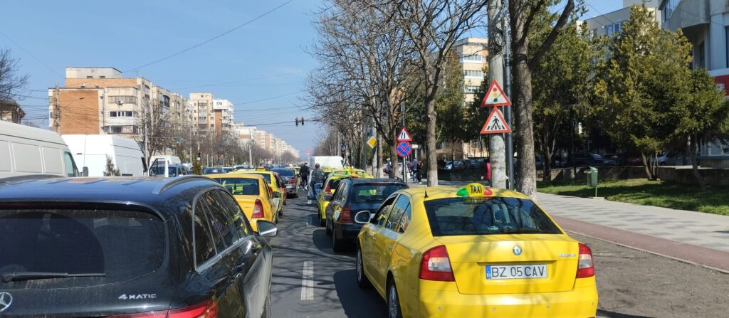 Astăzi, zeci de taximetriști din orașul Buzău au protestat în trafic, nemulțumiți față de decizia autorităților de a desființa mai multe stații de taxi. Ei s-au strâns în parcarea unui supermarket de pe Calea Eroilor, apoi au pornit, încolonați, pe străzile municipiului.