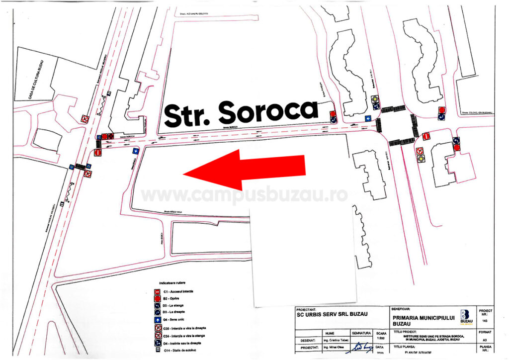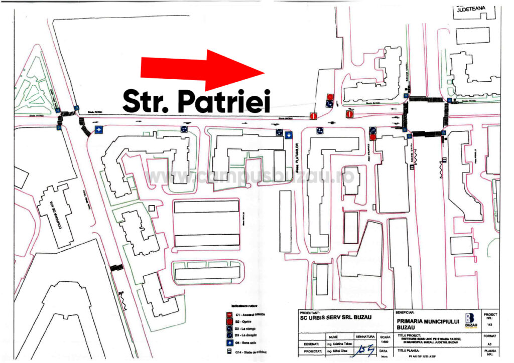 Primăria Municipiului Buzău aduce la cunoștință participanților la traficul rutier instituirea din data de 10.07.2023 a sensului unic de circulație a autovehiculelor pe străzile Soroca și Patriei din Municipiul Buzău, după cum urmează: