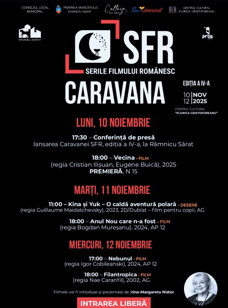 ,,Anul acesta, Caravana de Film este una cu adevărat specială. Le mulțumim din suflet domnului Andrei Giurgia și doamnei Irina-Margareta Nistor, oameni care iubesc cultura și Râmnicu Sărat și care s-a mobilizat extraordinar pentru ca această frumoasă inițiativă să continue în orașul nostru. Vă așteptăm să ne bucurăm împreună de magia filmului! Evenimentul este realizat exclusiv cu sprijinul Asociației ARTIS, al Uniunii Cineaștilor din România și al sponsorilor, oameni care cred în puterea artei și a comunității.„, transmit organizatorii.