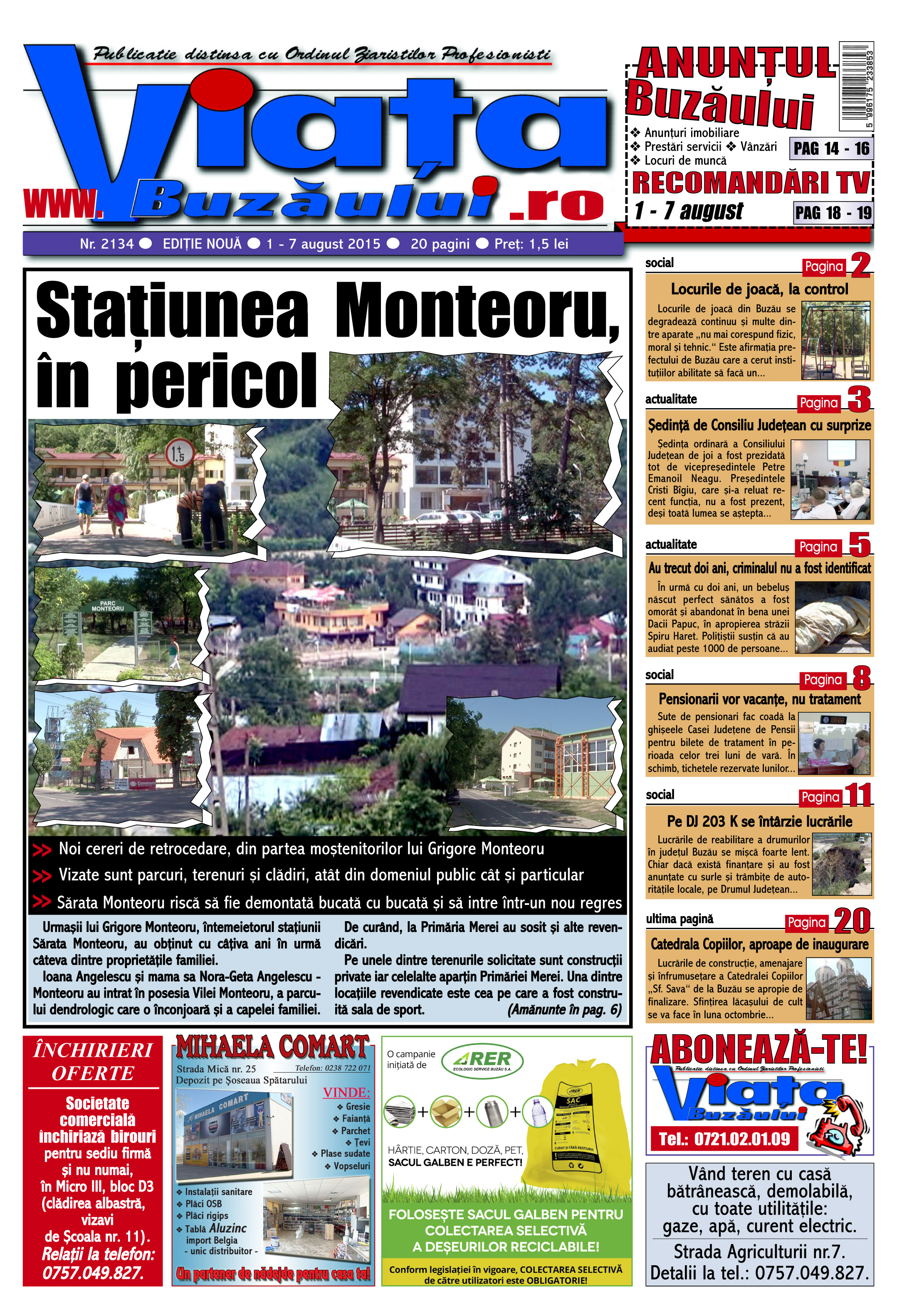 Viaţa Buzăului publică articole de medicină naturistă, programele TV, anunţuri imobiliare şi locurile de muncă vacante.