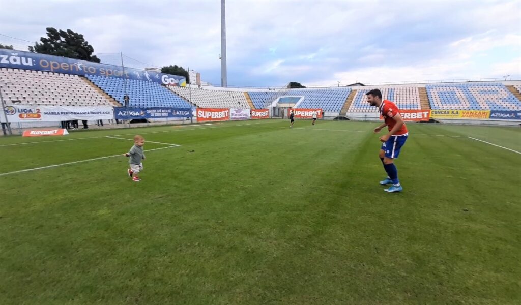 Ultimul intrat la vestiare după victoria de ieri de pe stadionul Gloria a fost Valentin Alexandru. Imediat după meci, la atacantul formației din Crâng a băiețelui lui, David, care nu s-a dezlipit de minge, în timp ce tatăl lui făcea fotografii cu fanii din galeria Gloriei.