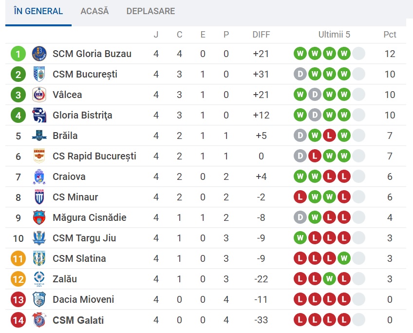 Grație victoriei de ieri, Gloria păstrează primul loc în campionat, fiind singura echipă care a câștigat toate cele patru partide disputate la acest început de sezon.