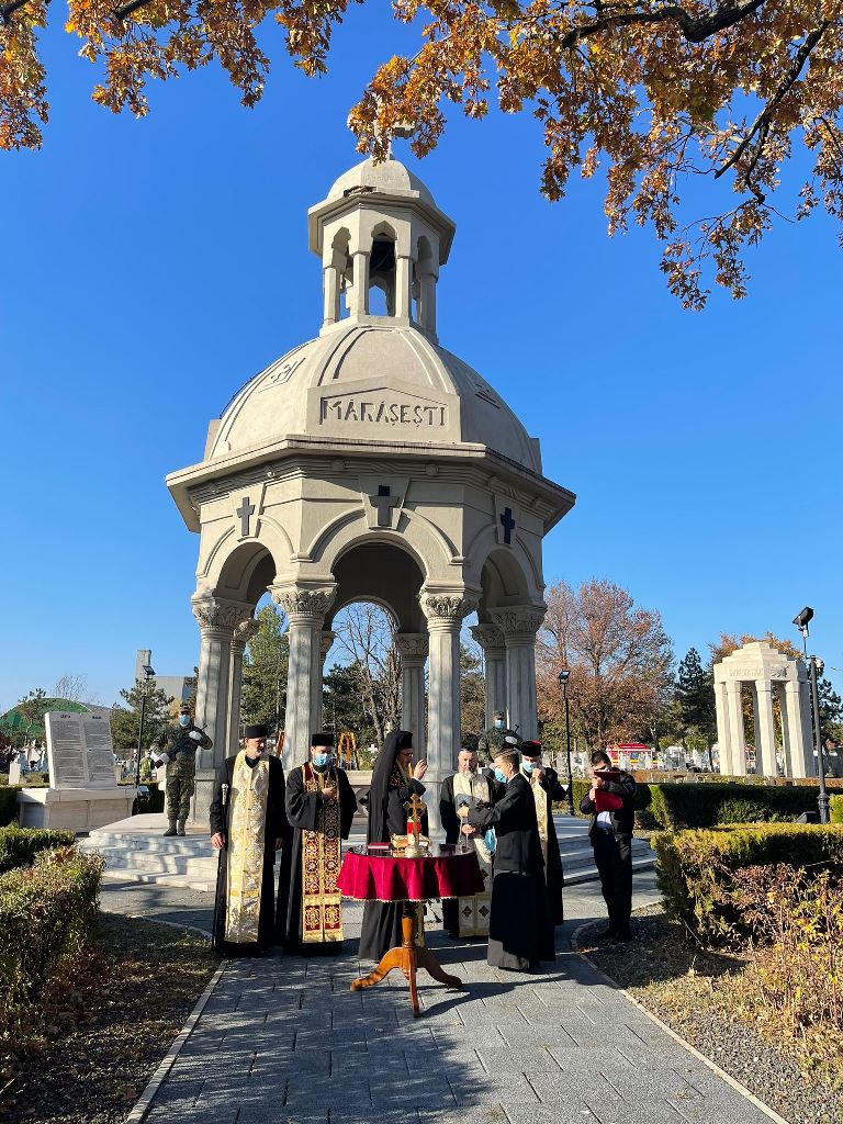 Manifestările dedicate Zilei Armatei Române s-au încheiat cu depunerea de coroane de flori și jerbe la Domul din Cimitirul Eroilor, în timp ce mai multe aparate de zbor din Baza Aeriană de la Boboc au survolat zona.
